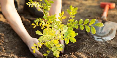 「間伐」と呼ばれる間引き作業を行い、林内環境をよくして樹木が健康に育つようにします。間伐をすることにより地面に日光が差し込み、さまざまな草木が新たに生え、それを食料とする昆虫や鳥が生育するようになるなど生物の多様性が向上します。