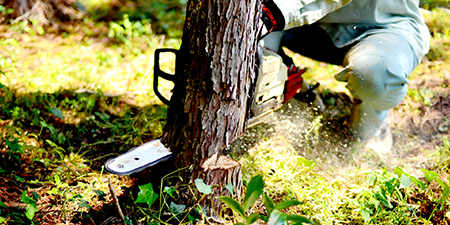 林業の仕事は1年を通して行われます。 地ごしらえ→植栽→下刈り・つる切り→枝打ち・除伐→間伐と、1年間で季節ごとの作業を行います。